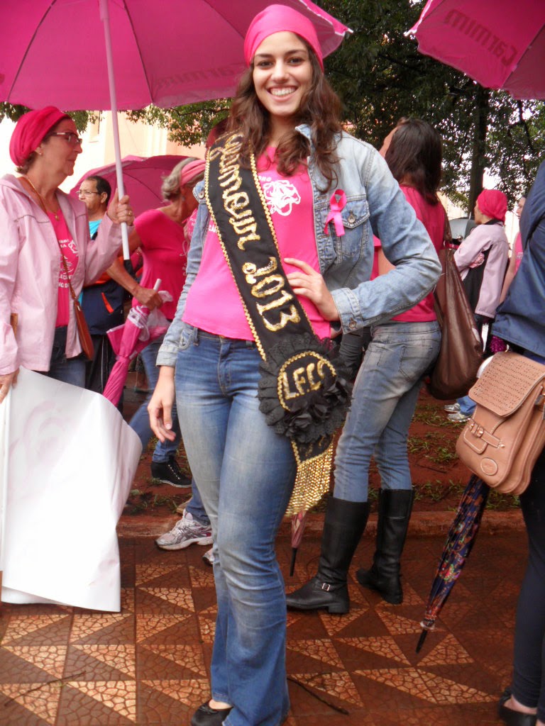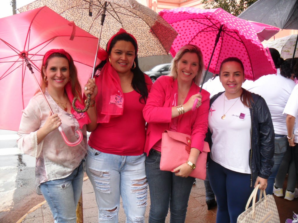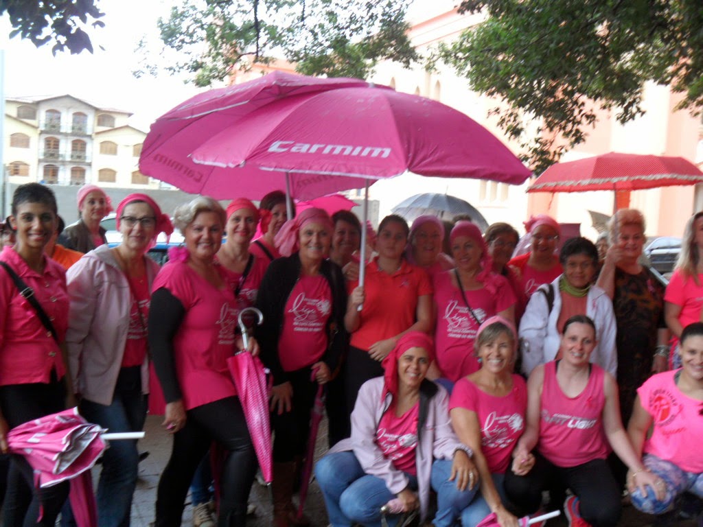 A chuva não atrapalhou o que estava programado pela LFCC. As voluntárias, juntamente com a Presidente Clarice Silveira Netto e a Glamour Carolina Morella do Nascimento estiveram a frente da caminhada mais significativa, não só do ‘Outubro Rosa”, como da vida de muitas pessoas e de seus familiares. O trabalho, que é incansável, serve de alento e de fortalecimento de ações que amparam a grande causa: a luta pela vida. Quando o câncer bate em nossa porta ou de um familiar próximo o sofrimento é de todos, mas também a fé, a esperança e a luta pelo combate do mesmo, também é de todos. Muitas Lojas, Instituições participaram entre elas: Domitila fez a doação de ombrelones Carmim, um luxo, Kabeça Feita, Acquafit e Fit Light, Banco de Alimentos…