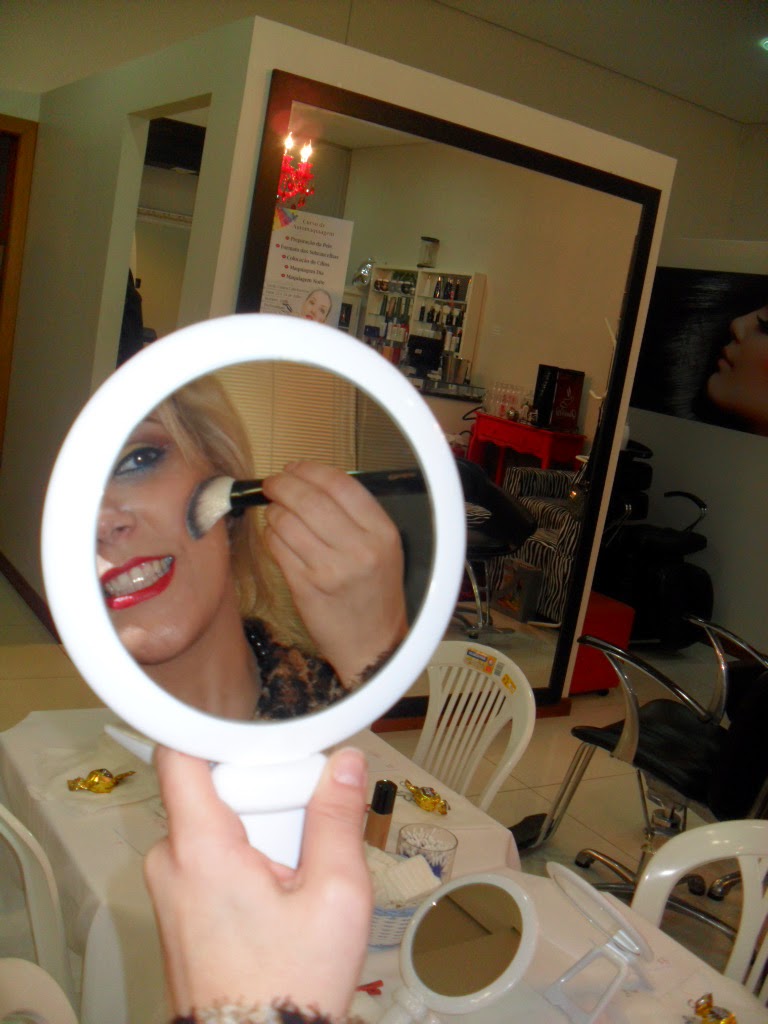 Curso de Automaquiagem em Cenira Cabeleireiras foi maravilhoso, mulheres bonitas, que sabem que, já dizia o poeta, beleza é fundamental. As responsáveis, Grazielle Ricachenevsky e Mabel Fritz, lindas e bem maquiadas convenceram no 1º momento. Os Produtos da Natura aprovadíssimos, pela qualidade e pelo resultado: rostos que se transformaram, se iluminaram e sorrisos de aprovação, pois aprender a se automaquiar, era o que faltava, para no dia dia, assegurar um visual moderno, pele linda, olhos destacados, realçando a beleza própria de cada uma. Hoje foi o dia( já passa da meia noite, então, ontem) da automaquiagem para ser usada durante o dia; 1º) Limpeza; 2º)Tonificação; 3º) Hidratação; 4º) Início do processo da automaquiagem. Espalhar primer( segura melhor a maquiagem) em todo o rosto e pescoço, inclusive na área dos olhos. Pode ser escolhido usar BB- Base Multi Benefício, hidrata e tem filtro solar FPS 30 ou usar base, nesse caso, tem que passar filtro solar antes, depois primer. Várias dicas foram dadas: Usar corretivo pastoso, usar corretivo na boca para melhor fixar o batom. Boa maquiagem dura o dia inteiro. A Natura garante a fixação. Uma dica que foi muito bem-vinda é o contorno com pó mais escuro para afinar nariz, rosto e camuflar testa, enfim, escurecer o que não queremos salientar. Muito importante são os pincéis, não pode se economizar na quantidade e nem na qualidade e fazer a limpeza dos mesmos uma vez por mês. Marcar bem o olho, esfumaçando-o. Sobrancelhas bem delineadas fazem toda a diferença no resultado. Uso de lápis branco dentro da linha d’agua e lápis preto fora da linha d’agua abre e ilumina o olhar.