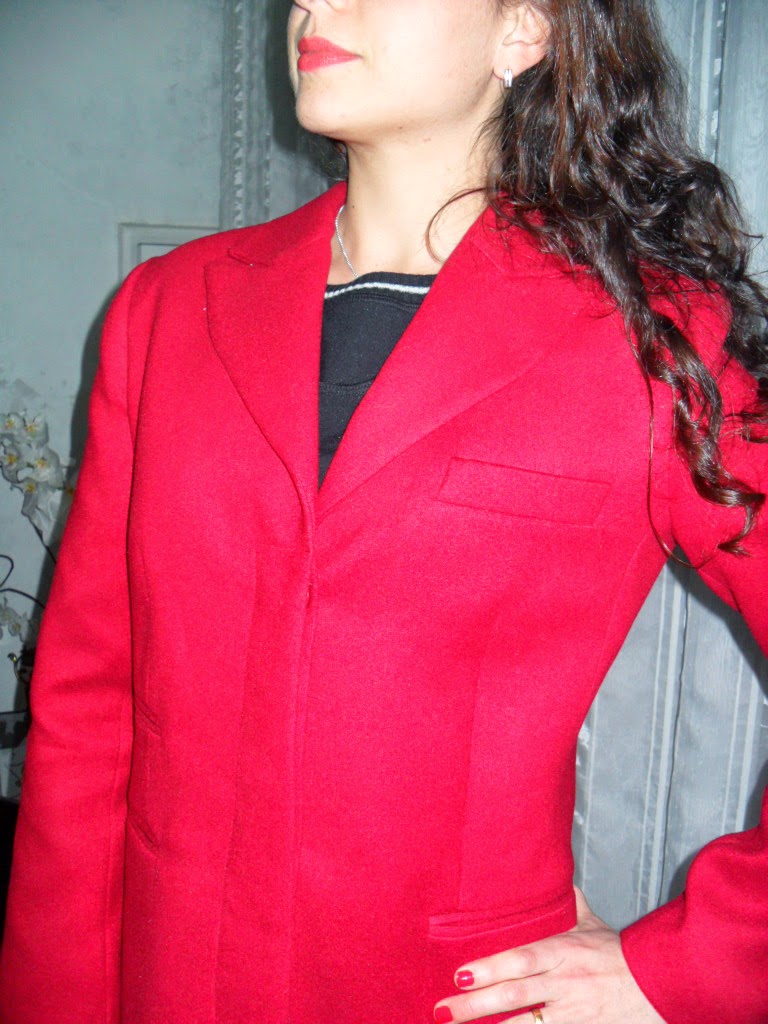 Casacos em Lã: Juli veste azul da Anna Karenina e Carol veste vermelho da Carina Duek Casaco na cor militar, bordados aplicado da Anna Karenina Casaco preto em matelassê, cintura marcada da Anna Karenina Casaco em brocado, fundo marinho e detalhes em verde- azulado, gola de pele P & B da Anna Karenina