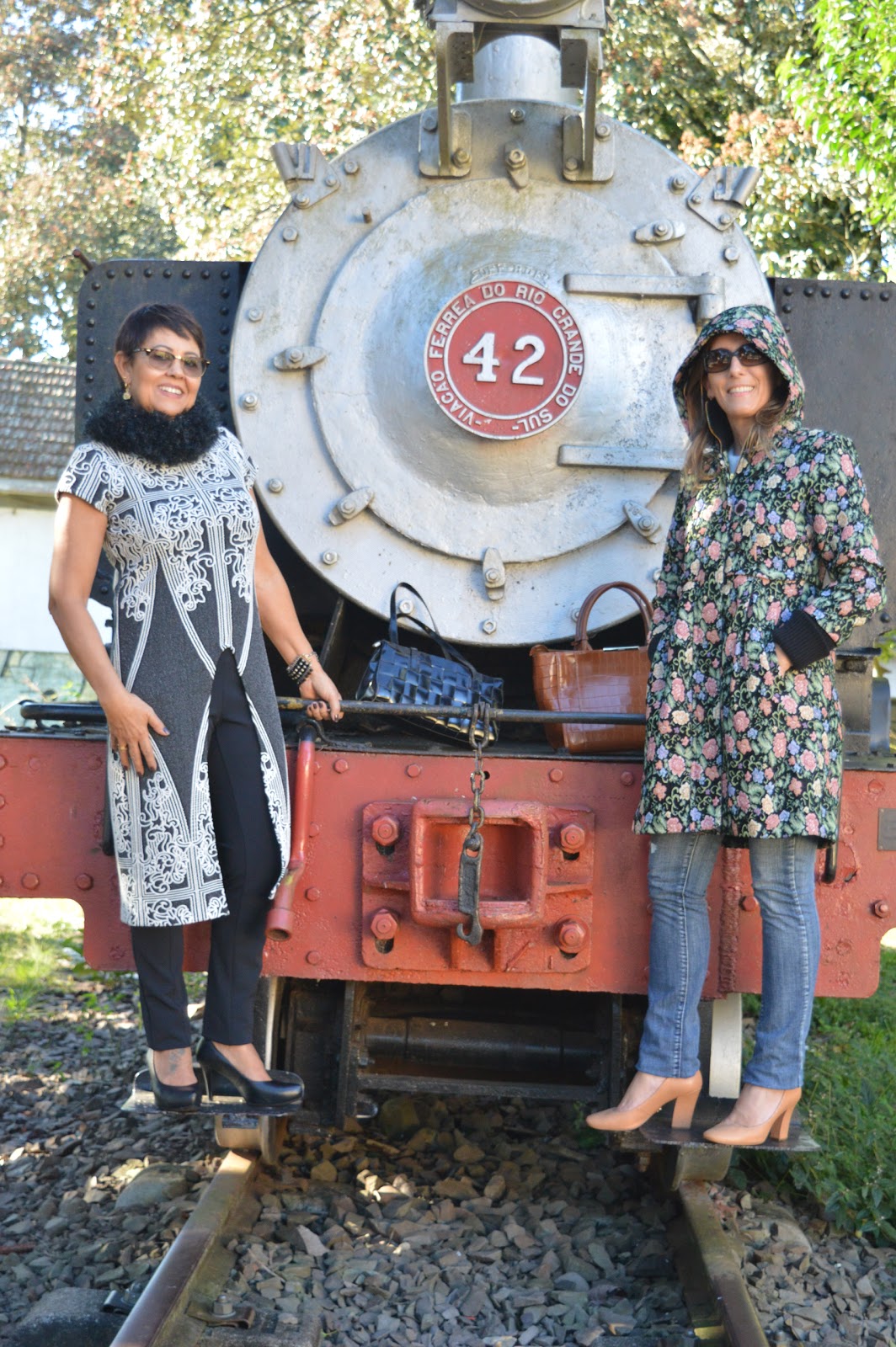Dia de sol, temperatura amena, combinação perfeita para um editorial. A moda, antes de mais nada, quero dizer que passa longe de futilidade ou frivolidade, pois em termos de emprego e movimento da economia é o segmento que fica em segundo lugar, só perde para a construção civil. Então, são milhões de pessoas empregadas no setor e isso quer dizer, famílias sustentadas pelo setor. Bem, as tendências, são na verdade, inspiradas em décadas passadas e o que está no street style do outono 2017 tem um pouco da década de 70, 80 e 90. Mix de materiais, veludos, jacquards, jeans, peles fake, couro fake, tricot, metalizado, verniz, são os must have!!! Ah, os detalhes: o capuz, adquiriu status de acessório, o plissado deu o ar da graça, as listras, roubadas dos agasalhos esportivos apareceram nos punhos e barra da jaqueta bomber com aplicações de bordado. Calçados pesados ao lado do escapim ajudam a compor os looks. Participaram do editorial a jornalista Dirce Manfio do Jornal Diário Serrano e a bancária Elenita da Costa Muller. Ótimas companhias!!! Inspire-se!!! E vem mais posts por aí, vou focar nos looks para o dia a dia, trabalho e festa!!!