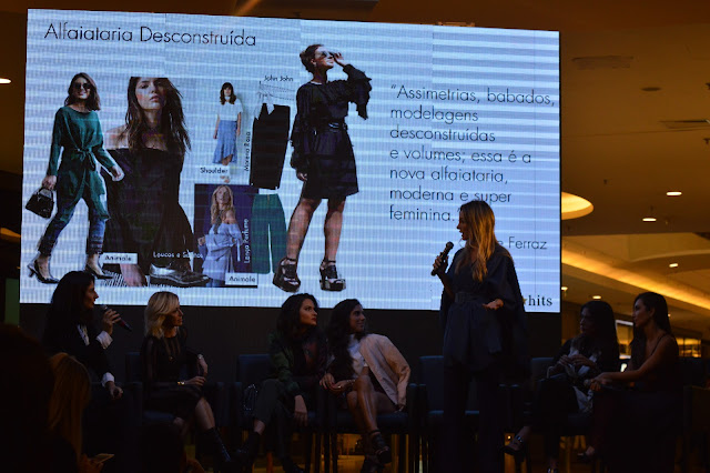 Segundo The Business of Fashion- BoF, Alice é uma catalisadora brasileira que exerce impacto global na indústria da moda. Parece bastante, mas é pouco, porque Alice tem uma luz, beleza e simpatia ímpar. No próximo post vou falar mais sobre ela. Após o whorkshop de maquiagem de Alice Salazar, assumiu o palco Alice Ferraz para capitanear um trend talk sobre tendências da estação e como usá-las no dia a dia. 7 tendências foram apresentadas: Azul- marinho com preto; vermelho com rosa; neo- militar( com vários tons de verde), shine bright ( aliar o brilho do lurex, paetês e metalizados aos básicos), usado durante o dia, a qualquer hora, renda & transparência, o segredo é equilibrar, usar sobreposições para que o look fique descolado e elegante, na medida; alfaiataria desconstruída, conceitual, deixa a mulher menos séria; turtleneck, gola alta, visual elegantérrimo e moderno. Rola o mouse e confere!!!
